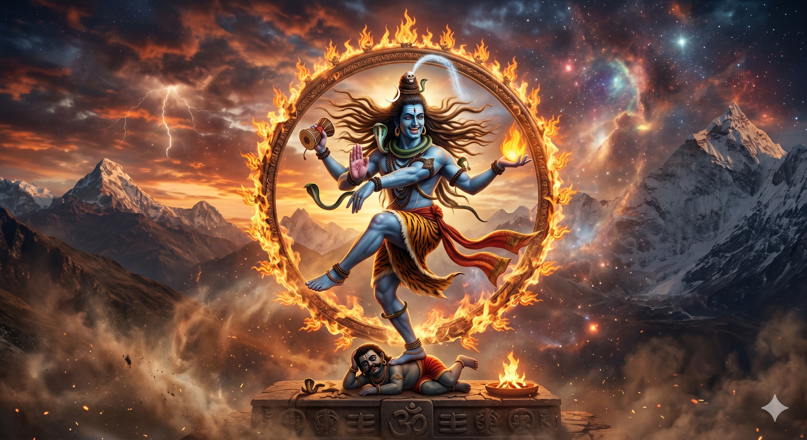 Když se vesmír ocitl v nerovnováze, Šiva započal svůj kosmický tanec – Tandava*. Každým krokem tvořil, udržoval i nechal zanikat světy. Jakmile svou nohou přišlápl nevědomost, jeho tanec navrátil existenci řád a rytmus, čímž všemu živému připomněl, že i ničení je nezbytnou součástí obnovy.
